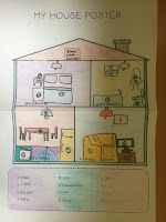 Po tistem, ko smo spoznali delčke besedišča v povezavi s hišo in jih uspeli uporabiti tudi v preprostih povedih, smo se lotili krajevnih predlogov, torej tega, da povemo, kje se nekaj nahaja. Več o načinu posredovanja snovi in dejavnostih si lahko preberete V TEM PRISPEVKU.
