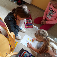 Učence povabim, da se razporedijo v pare. Vsak par ima na voljo štiri različne barve (flomastri ali voščenke), lahko uporabi vse, lahko samo eno … po želji. Po skupnem dogovoru na list razporedijo pike kakor želijo.